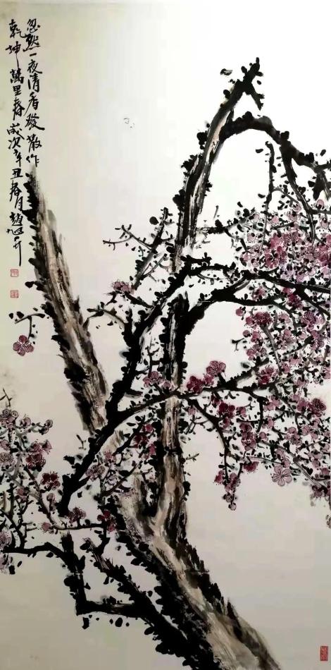 近年來,趙旭升主攻寫意花鳥,兼及山水,其花鳥畫作品宗法清末海派大師吳昌碩、任伯年,明代寫意花鳥大師徐渭、陳淳,梅花作品主要宗法清代大師金農(nóng)。