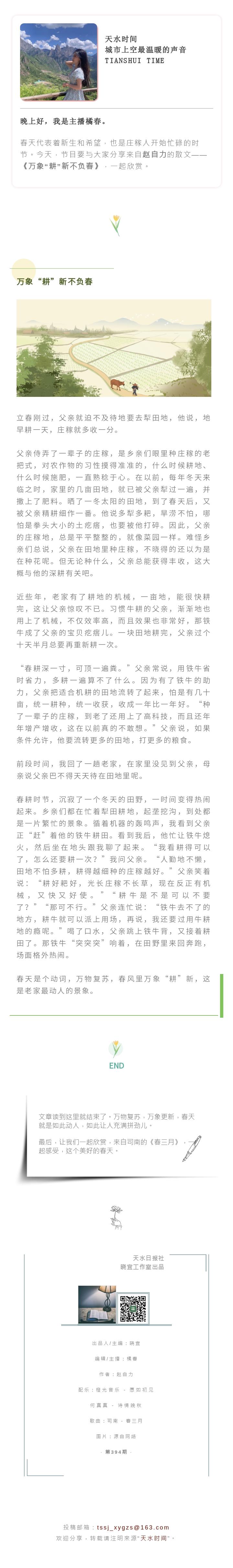 1、凡注有“新天水訊”的稿件,均為天水日報社版權(quán)稿件,未經(jīng)許可不得轉(zhuǎn)載或鏡像;授權(quán)轉(zhuǎn)載必須注明來源為“新天水”,并保留“新天水”電頭。