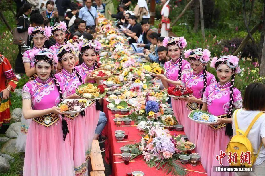 云南麗江游客體驗(yàn)“百花宴”。楊晨 攝