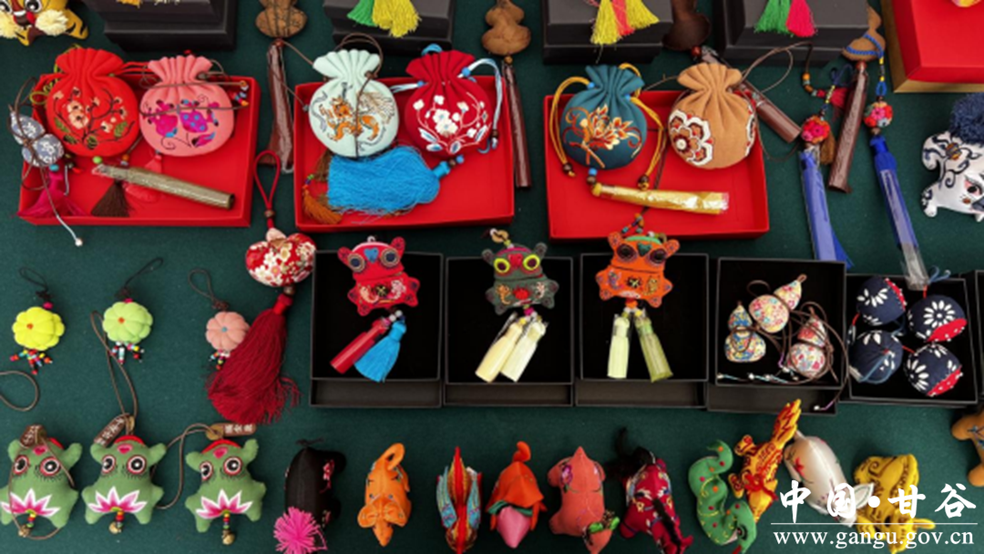 中國四大名硯之一的甘肅洮硯以其色澤碧綠、溫潤細(xì)膩的特點而著名,作為國家級代表性傳承人盧鎖忠的兒子,盧廣成憑借在中央美院的學(xué)習(xí)功底,以現(xiàn)代明快的設(shè)計理念讓洮硯實現(xiàn)創(chuàng)造性轉(zhuǎn)化,打造了“文公子”洮硯系列產(chǎn)品,受到現(xiàn)場嘉賓和觀眾的青睞。慶陽香包古拙質(zhì)樸、色彩濃郁,甘肅省級代表傳承人劉蘭芳將其傳統(tǒng)元素與國潮內(nèi)涵相結(jié)合,創(chuàng)作出“十二生肖”“虎頭帽”等古典與潮流并行的文創(chuàng)產(chǎn)品。作為劉蘭芳的兒子,慶陽歧黃文化傳播有限公司負(fù)責(zé)人張煜琛頭戴“虎頭帽”,布展期間就被過往游客圍觀,買走了老虎枕頭、香包掛飾等產(chǎn)品。