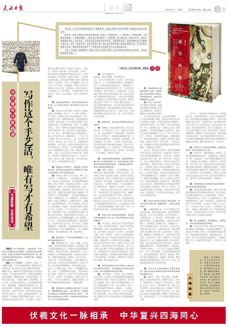 日前,新天水記者胡曉宜就《遙望西域:絲路上的騎士風(fēng)骨與背影》創(chuàng)作歷程及熱烈的社會反響,與作家楊逍展開對話——