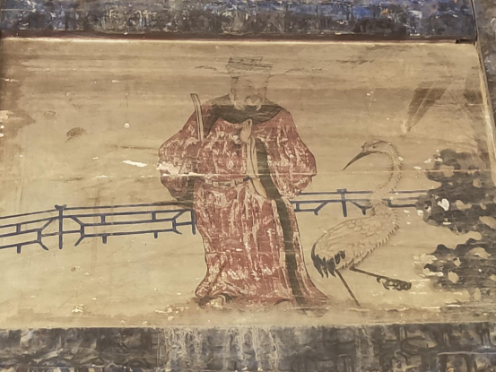 戲樓內二簾額板和梁柱上較好地保存了許多清代彩畫,其中以墨書“太古元音”和彩畫天官賜福圖最為精彩。