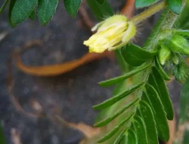 單看那黃色的五瓣小花,會覺得像委陵菜家的成員。再瞅瞅偶數(shù)羽狀對生的小葉,就立馬否定了之前的猜想。翻一下葉和莖,露出下面的小“刺球”,嗨,可不就是蒺藜嘛!