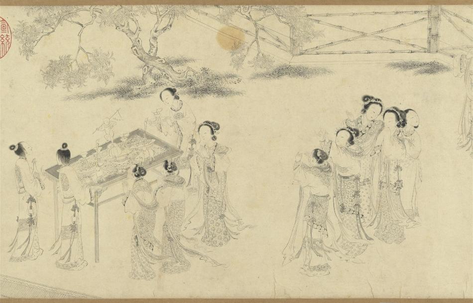 明·仇英 《乞巧圖》卷(局部) 紙本水墨