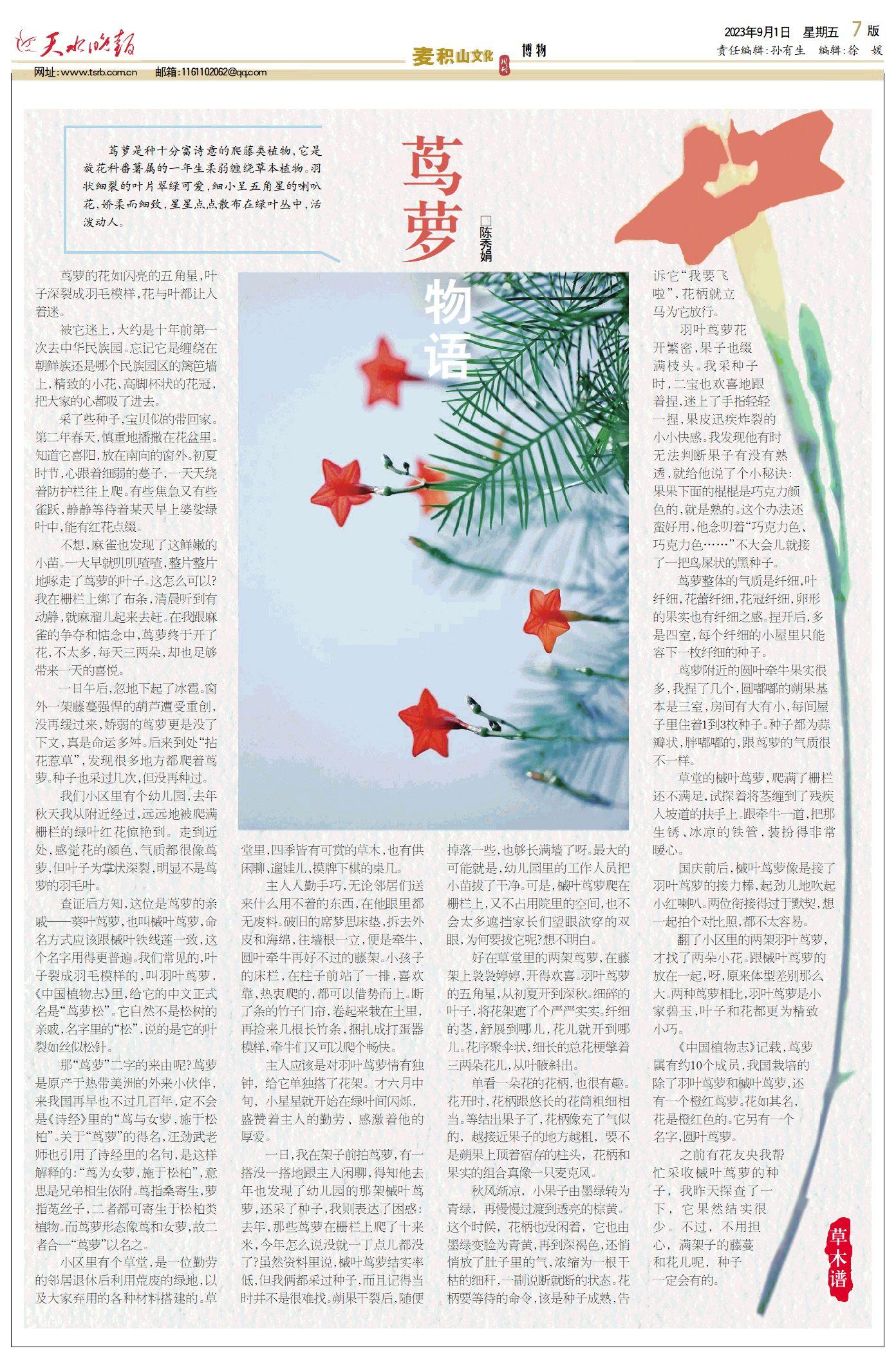 蔦蘿的花如閃亮的五角星,葉子深裂成羽毛模樣,花與葉都讓人著迷。