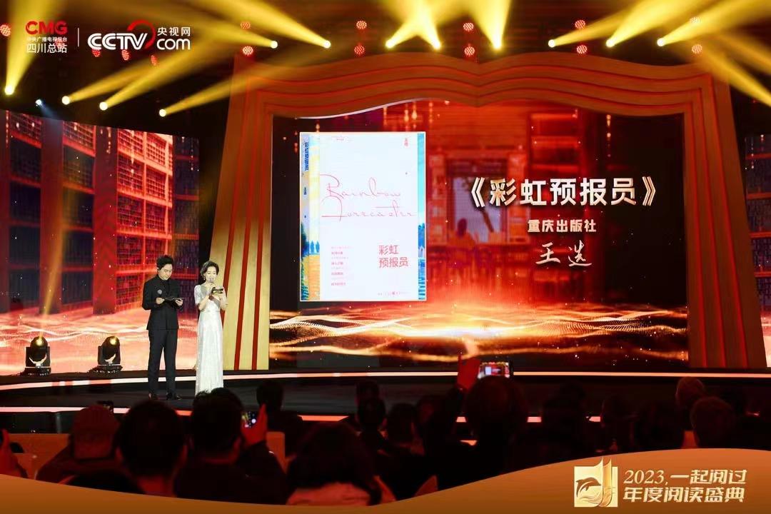 新天水訊【記者徐媛】12月29日晚,在四川綿陽舉行的大型跨年閱讀活動——“2023,一起閱過”年度閱讀盛典上,揭曉了文學(xué)、藝術(shù)、社科、科技、少兒、生活六大類推薦書單,每個門類的推薦書單各10本,共有60部(套)作品入選。其中,由重慶出版社今年8月出版的王選短篇小說集《彩虹預(yù)報員》入選文學(xué)類推薦書單,作者王選作為文學(xué)類推薦書單代表分享了獲獎感言。