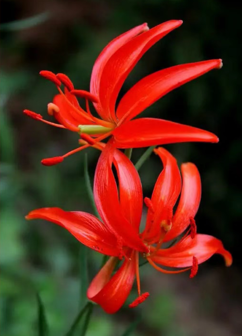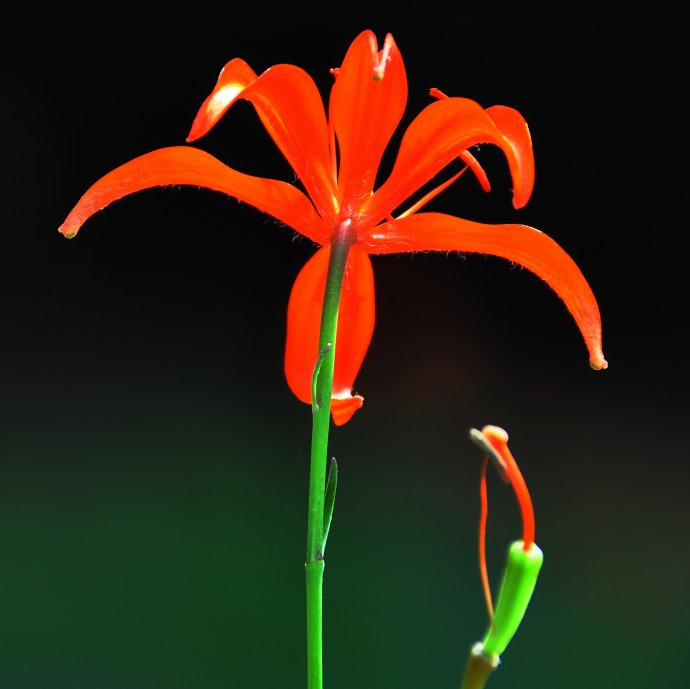 “卷花翻碧草,低地落紅云”。入夏,在北方向陽的山坡上,有那么一叢叢紅色的花朵,如火,如云,紅花襯著綠葉,似乎整片山坡都醉了一般。細(xì)看,一尺多高的莖干上,狹長的葉子細(xì)若松針,六片朱紅色的花瓣向外翻卷,花柱中間,棗紅色的花蕊浮著細(xì)碎的花粉,花瓣上晶瑩的露珠令花兒有了一種嬌羞含澀的美。
