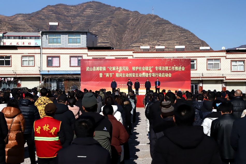 新天水訊 據(jù)武山縣融媒體中心消息 12月30日,武山縣灘歌鎮(zhèn)“化解矛盾風(fēng)險、維護社會穩(wěn)定”專項治理工作推進會暨“兩節(jié)”期間主動創(chuàng)安主動創(chuàng)穩(wěn)專項行動啟動儀式舉行。