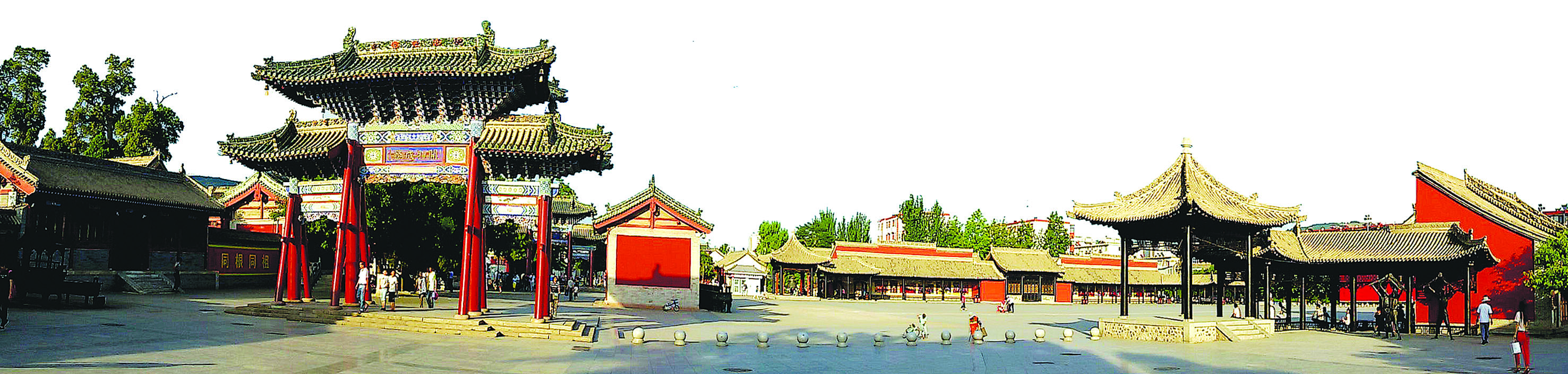 天水牌坊以木制為主,起初只有單排立柱,后來才逐步發(fā)展為四柱、六柱,是一種門洞式的建筑。具有代表性的當(dāng)屬伏羲廟大門前的三座牌坊,嚴(yán)格來講它們屬于牌樓,其中兩座在20世紀(jì)50年代被拆除,現(xiàn)在展示在我們面前的是重修的牌樓。