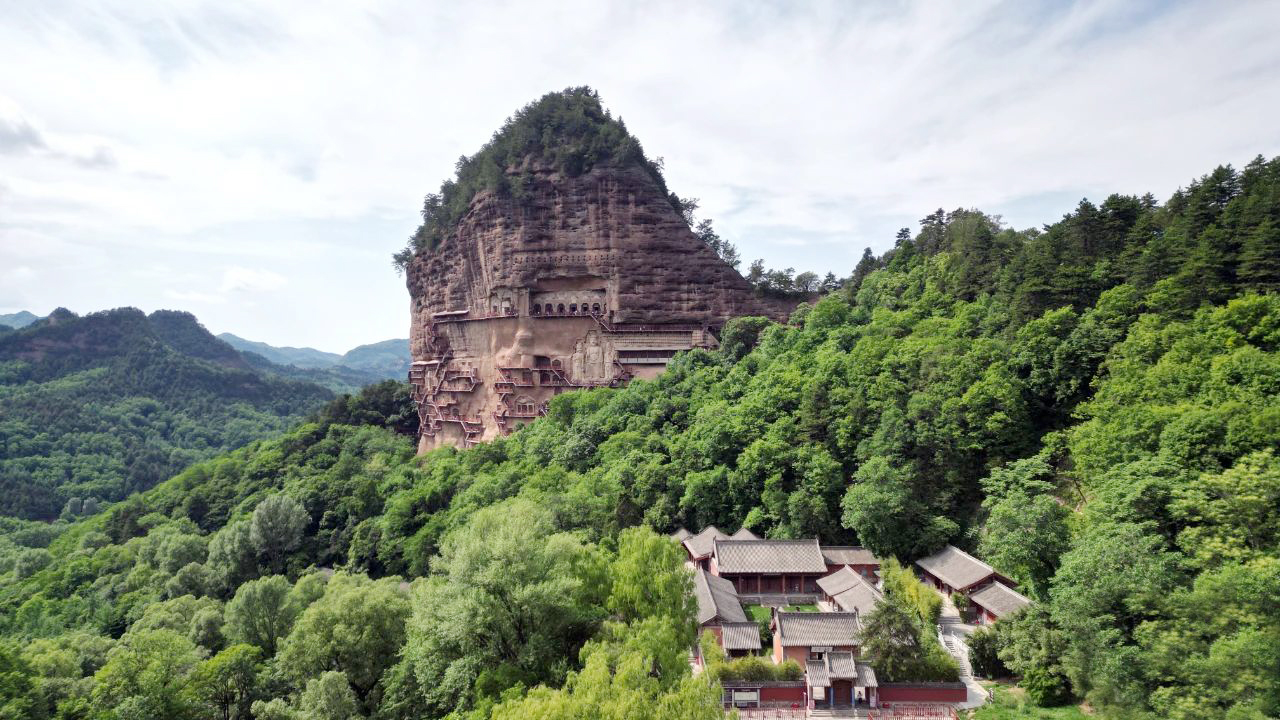 隴東南的群山間,麥積山石窟如一座凝固的藝術(shù)史詩。十六國后秦的斧鑿聲早已消散,凝結(jié)在時(shí)空里的“東方微笑”卻依然溫柔凝視著川流不息的時(shí)光和來來往往的人。