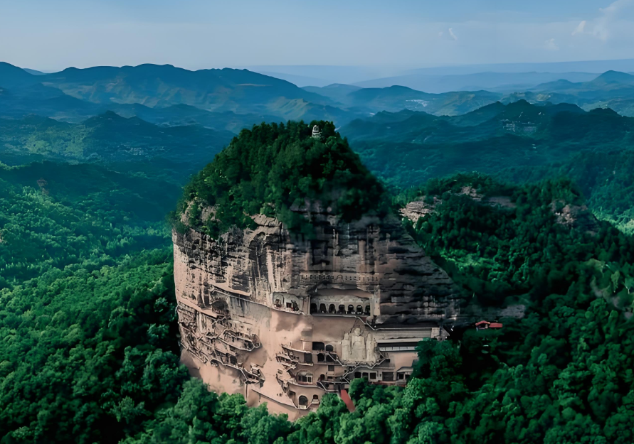 回望麥積山,暮色中的崖壁如沉睡的巨佛,那些綠樹、藤蔓、燈火,還有那些守護者的身影,都已與它渾然一體。風過時,松濤與洞窟的風聲應和著,分不清究竟是山的呼吸,還是人的低語。
