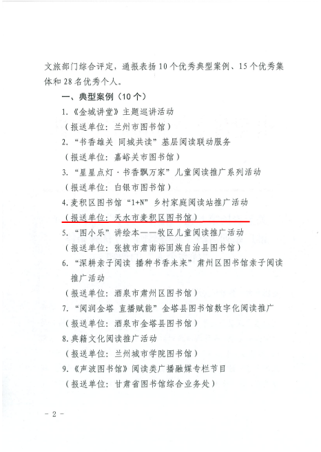 喜報:麥積區(qū)圖書館“1+N”鄉(xiāng)村家庭閱讀站推廣活動榮獲佳績!