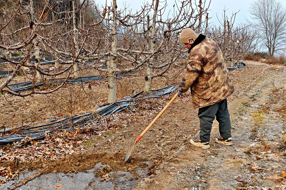 “十月份開始,我們就在果樹邊埋肥,冬灌水要浸透一米多深的土層。表層形成一層‘冰殼子’,既能保溫,又能促進(jìn)根系生長。土壤墑情足了,來年的果子才能結(jié)得更好。”王軍春的農(nóng)事安排,始終緊貼著節(jié)令走?!罢⑹┓?、灌溉,一步都慢不得。這幾百畝地要連續(xù)澆三個(gè)月,澆透了,果樹明年才能開好花、結(jié)好果。”