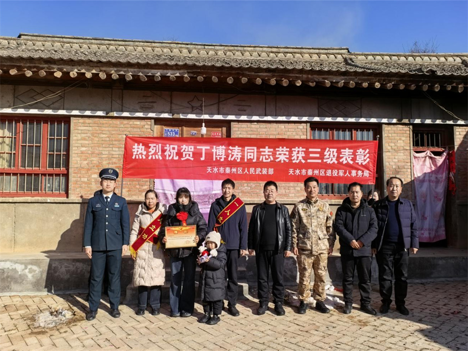 新天水訊 據(jù)秦州區(qū)融媒體中心消息 鑼鼓喧天慶榮耀,喜報(bào)登門暖軍心。1月6日,秦州區(qū)人民武裝部、區(qū)退役軍人事務(wù)局聯(lián)合平南鎮(zhèn)人民政府相關(guān)工作人員,懷著對(duì)現(xiàn)役軍人的崇高敬意與對(duì)軍屬的深切關(guān)懷,先后前往平南鎮(zhèn)富陽村、丁川村,為在部隊(duì)榮立“三等功”的現(xiàn)役軍人家庭登門送喜報(bào)?;顒?dòng)現(xiàn)場(chǎng)通過懸掛榮譽(yù)橫幅、燃放喜慶禮炮、敲響吉祥鑼鼓等形式,共同分享這份屬于軍人、家庭與家鄉(xiāng)的榮耀時(shí)刻。