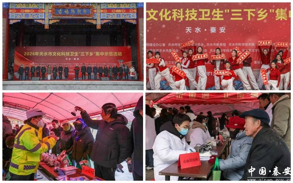 新天水訊 據(jù)秦安縣融媒體中心消息 1月19日,天水市2026年文化科技衛(wèi)生“三下鄉(xiāng)”集中示范活動(dòng)在秦安縣隴城鎮(zhèn)女?huà)z文化廣場(chǎng)隆重舉行。隴城鎮(zhèn)新時(shí)代文明實(shí)踐志愿者積極響應(yīng)號(hào)召、緊密協(xié)同配合,使文明實(shí)踐“志愿紅”成為“三下鄉(xiāng)”基層惠民實(shí)踐中溫暖而堅(jiān)實(shí)的底色。