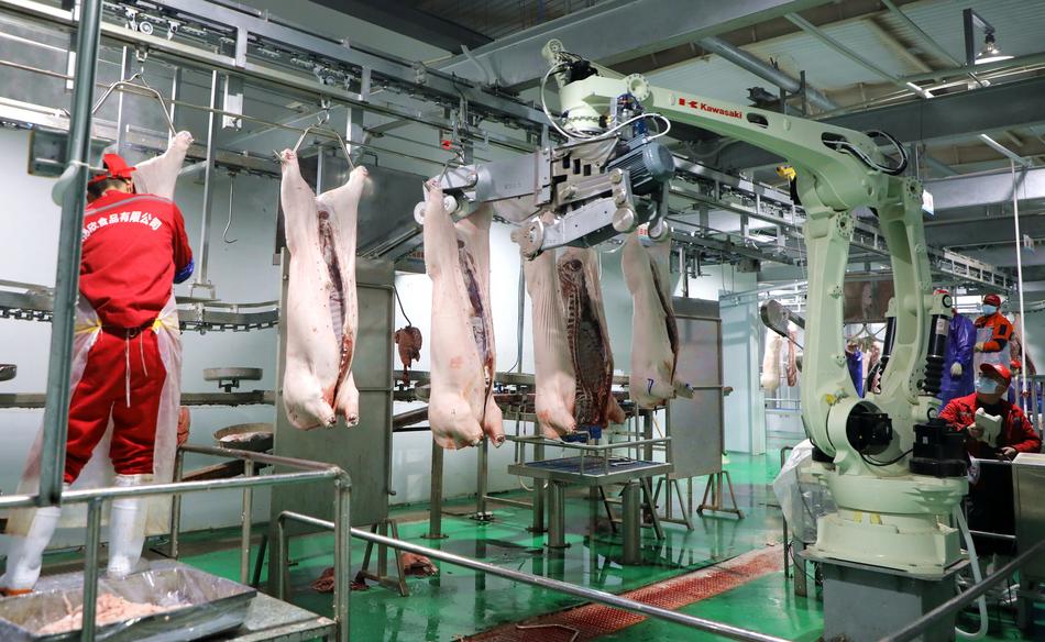 日前,記者走進(jìn)甘肅欣德欣食品有限公司的生產(chǎn)車間,機(jī)器轟鳴聲與工人忙碌的身影交織成一派熱火朝天的生產(chǎn)圖景。自動化屠宰生產(chǎn)線高速運(yùn)轉(zhuǎn),工人們身著統(tǒng)一工裝、佩戴專業(yè)防護(hù)裝備,在屠宰、分割、檢疫、包裝等關(guān)鍵環(huán)節(jié)各司其職、無縫銜接。從生豬進(jìn)場檢疫,到屠宰加工、同步檢驗(yàn),再到冷鏈配送,全鏈條嚴(yán)格遵循標(biāo)準(zhǔn)化流程,每一道工序都精準(zhǔn)高效,確保出廠豬肉新鮮安全。