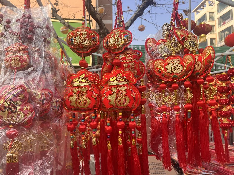 市場(chǎng)內(nèi)各區(qū)域整齊劃一,琳瑯滿目的年貨令人目不暇接:寓意吉祥的春聯(lián)、福字掛滿攤位,新鮮果蔬堆成小山,各類鮮肉蛋品供應(yīng)充足。