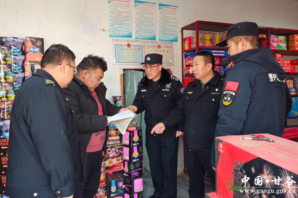 新天水訊 據(jù)甘谷縣融媒體中心消息 為深入貫徹落實(shí)甘谷縣2026年元旦春節(jié)期間煙花爆竹燃放管控工作部署,進(jìn)一步規(guī)范煙花爆竹經(jīng)營(yíng)秩序,全面排查整治各類安全隱患,切實(shí)保障人民群眾生命財(cái)產(chǎn)安全和社會(huì)公共安全,2月4日,甘谷縣公安局聯(lián)合縣應(yīng)急管理局、市場(chǎng)監(jiān)督管理局等相關(guān)部門(mén)組成聯(lián)合工作組,在全縣范圍內(nèi)集中開(kāi)展煙花爆竹安全整治專項(xiàng)行動(dòng),為群眾平安過(guò)節(jié)保駕護(hù)航。