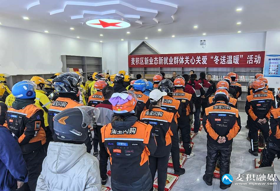 新天水訊 據(jù)麥積區(qū)融媒體中心消息 臨近春節(jié),2月6日下午,麥積區(qū)總工會(huì)聯(lián)合區(qū)社會(huì)工作部、區(qū)市場監(jiān)管局、區(qū)交通運(yùn)輸局,在麥積區(qū)新興領(lǐng)域區(qū)域性黨群服務(wù)中心紅色驛站舉行“冬送溫暖”新就業(yè)形態(tài)群體集中慰問活動(dòng),為快遞員、外賣配送員、貨車司機(jī)等一線勞動(dòng)者送上慰問物資與新春祝福,把黨和政府的關(guān)懷、工會(huì)組織的溫暖送到新就業(yè)形態(tài)勞動(dòng)者身邊。