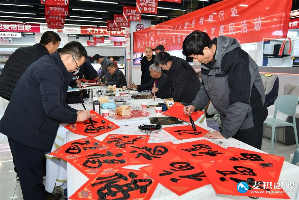 新天水訊 據(jù)麥積區(qū)融媒體中心消息 為弘揚中華優(yōu)秀傳統(tǒng)文化,營造喜慶祥和的馬年新春氛圍,2月6日,麥積區(qū)文聯(lián)2026(丙午)馬年“萬福迎春”公益文藝惠民活動走進新大新家電購物廣場,以筆墨為媒、以文化為橋,為廣大群眾書寫春聯(lián)、傳遞新春祝福,讓傳統(tǒng)年俗浸潤人心。