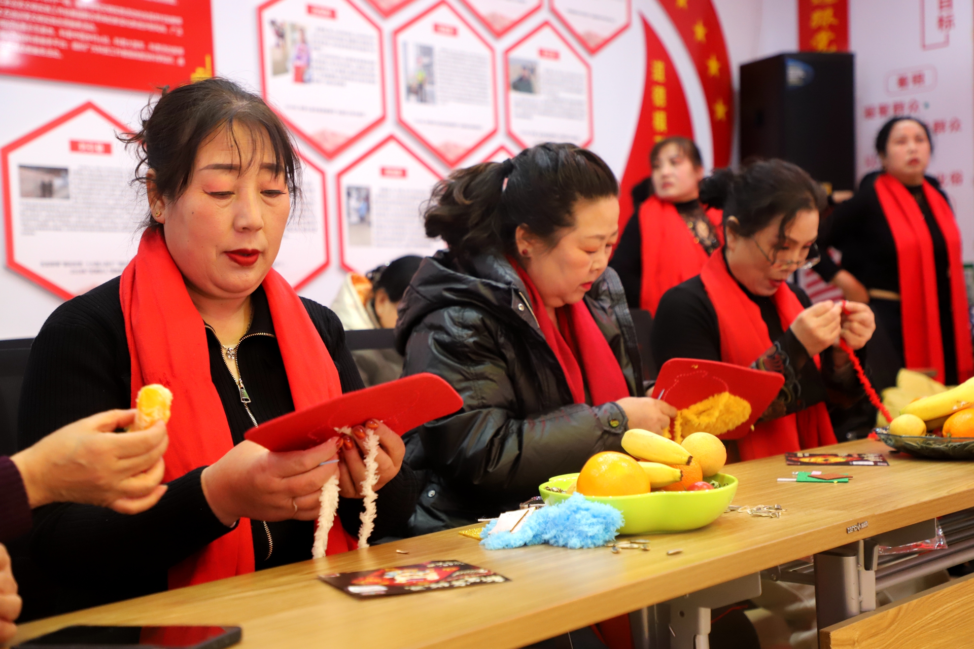 文藝表演過后,趣味十足的互動體驗環(huán)節(jié)依次開啟,居民們熱情高漲、踴躍參與。在非遺剪紙、巧手穿線畫體驗區(qū),志愿者早已備好紅紙、剪刀、彩繩等材料,手把手指導(dǎo)居民制作。大家一邊動手制作,一邊交流心得,現(xiàn)場其樂融融,剪出來的是吉祥,編出來的是團(tuán)圓,藏著中國人最傳統(tǒng)的新春祝福。