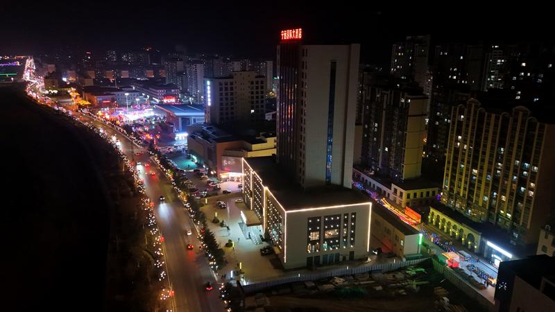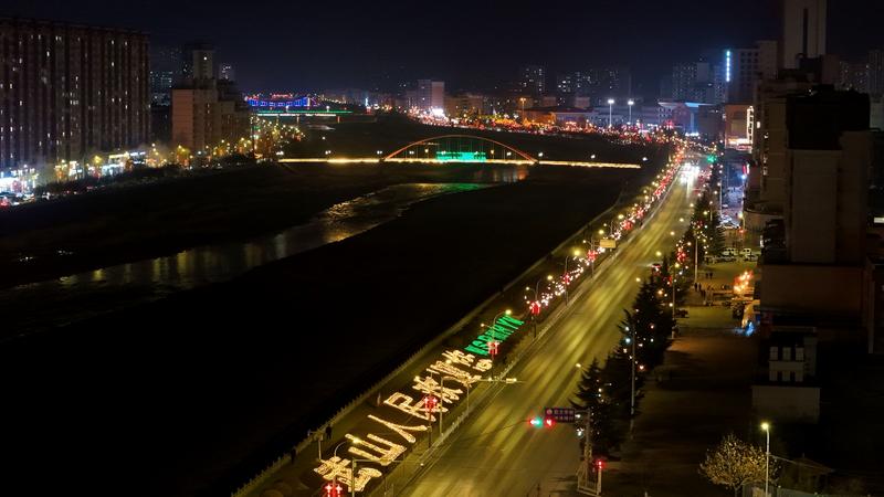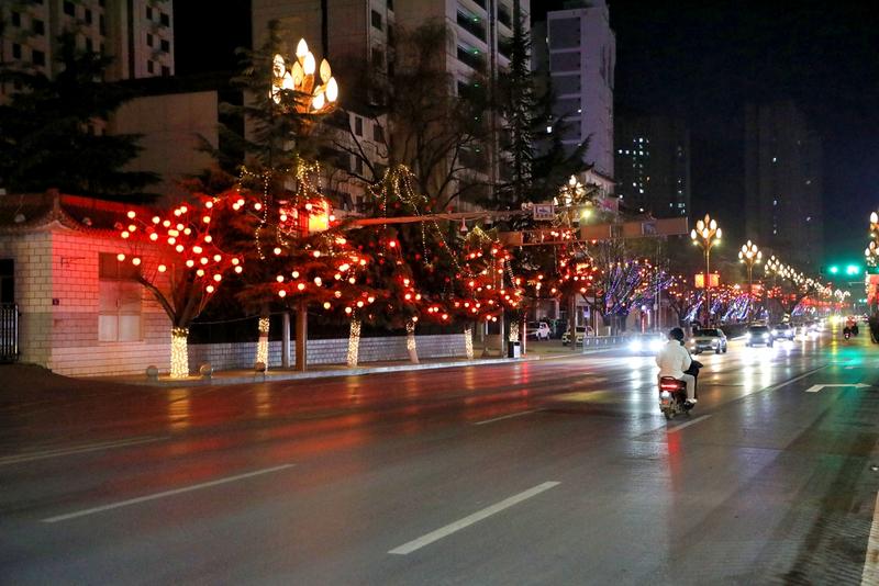 漫步城區(qū),寧遠(yuǎn)大道、南北濱河路沿線樹木、燈桿綴滿各色彩燈和鮮紅燈籠,它們隨風(fēng)輕搖,如星河垂落、繁花綻放、一步一景、滿目絢爛。