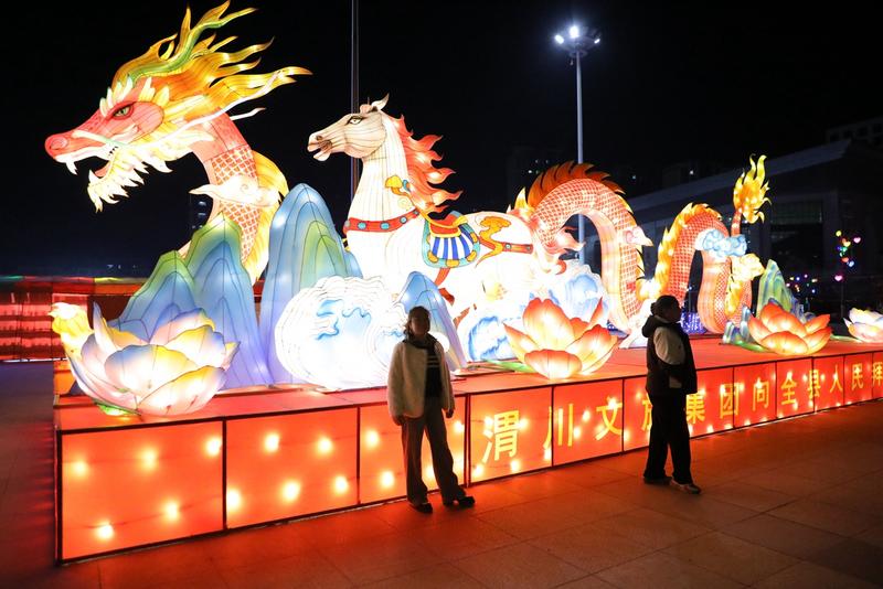 寧遠(yuǎn)廣場、人民廣場更是燈彩盛宴。各式花燈造型別致、流光煥彩,人們結(jié)伴賞燈、駐足拍照,熱鬧非凡。滿城燈光倒映在靜靜流淌的渭水中,水天一色、如夢似幻。