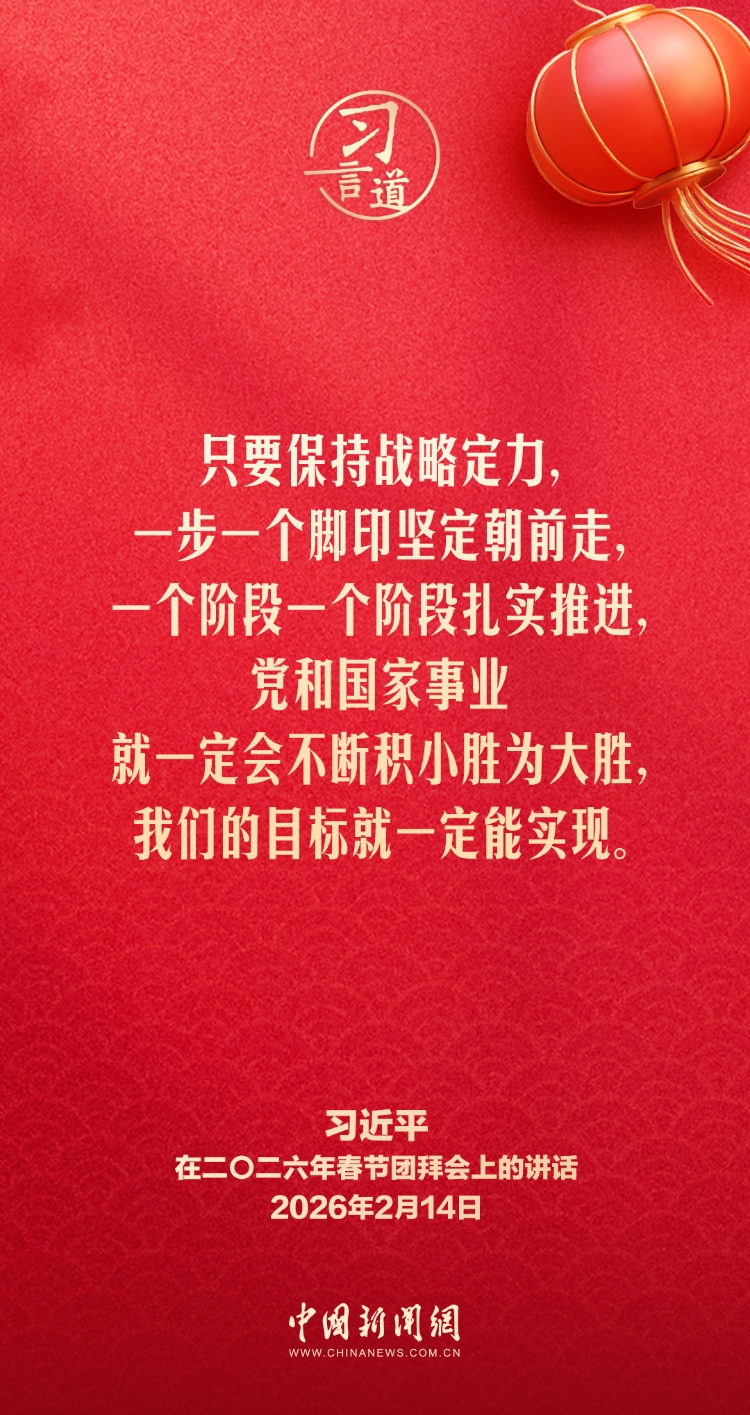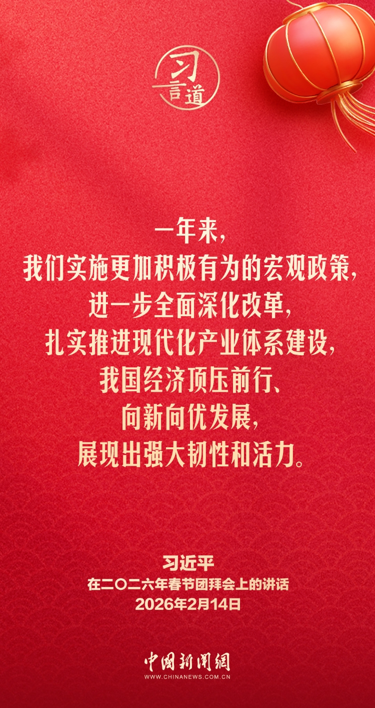 2月14日,中共中央、國務(wù)院在人民大會(huì)堂舉行2026年春節(jié)團(tuán)拜會(huì)。中共中央總書記、國家主席、中央軍委主席習(xí)近平發(fā)表講話,代表黨中央和國務(wù)院,向全國各族人民,向香港特別行政區(qū)同胞、澳門特別行政區(qū)同胞、臺灣同胞和海外僑胞拜年。他指出——