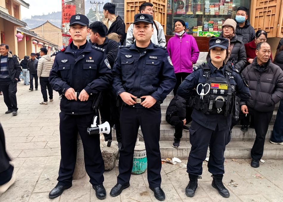 活動當(dāng)天,全體執(zhí)勤民輔警提前到崗履職,在社火表演起點、終點及沿途重點路口、關(guān)鍵部位,采取“定點值守+流動巡邏”相結(jié)合模式,全力維護(hù)現(xiàn)場秩序。交管部門對表演路段實施臨時交通管制,疏導(dǎo)分流過往車輛,保障表演隊伍通行順暢與群眾出行安全;特警及各派出所警力穿梭密集人流中,密切關(guān)注現(xiàn)場動態(tài),快速響應(yīng)突發(fā)情況,熱情為群眾提供咨詢幫助。