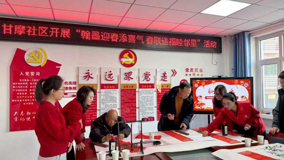 甘谷縣新興鎮(zhèn)甘摩社區(qū):翰墨迎春添喜氣 春聯(lián)送福睦鄰里