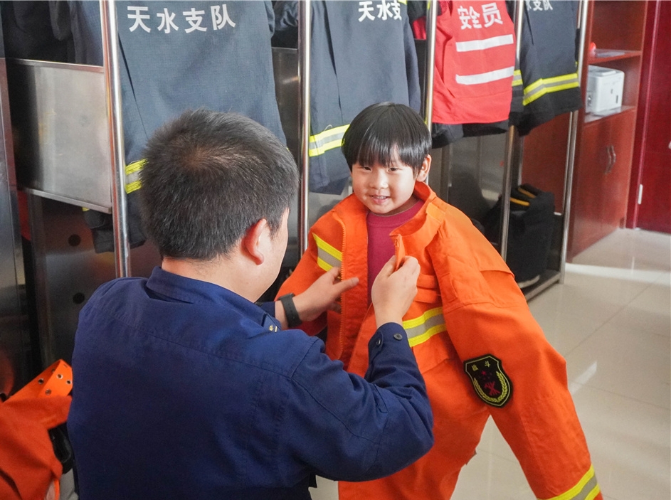 3月16日,甘谷縣大像山鎮(zhèn)小清華幼兒園的100多名小朋友走進甘谷縣消防救援大隊參觀學習,“零距離”感受消防魅力,試穿消防戰(zhàn)斗服,過足了一把“消防癮”。