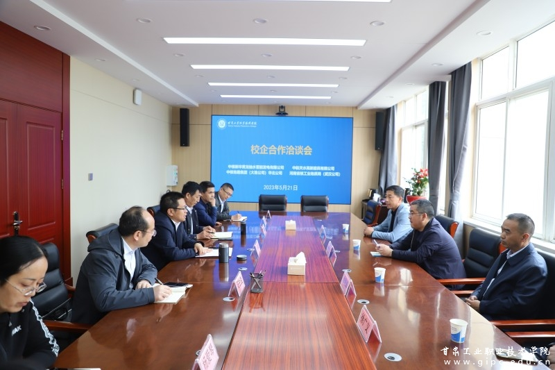 5月21日下午,中核新華黃龍抽水蓄能發(fā)電有限公司總經(jīng)理鮮世雄、辦公室主任戚海峰,中航天水高新磨具有限公司總經(jīng)理余剛峰,中核地勘集團(tuán)(大地公司)華北公司總經(jīng)理莊著學(xué),河南省核工業(yè)地質(zhì)局(武漢公司)總經(jīng)理徐廣義等一行到甘肅工業(yè)職業(yè)技術(shù)學(xué)院交流洽談。學(xué)校在行政樓2樓召開校企合作洽談會,副院長王利軍出席洽談會,組織人事部、教務(wù)處及相關(guān)二級學(xué)院負(fù)責(zé)人參加。