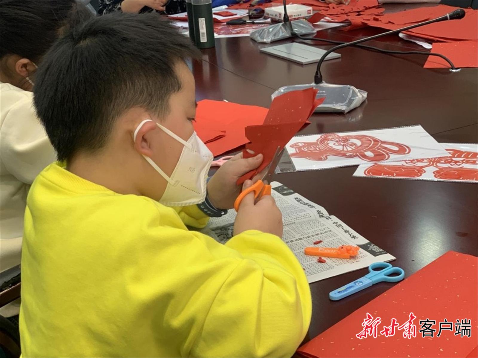 蘭州市博物館孔瑛老師還帶領(lǐng)學生們共同創(chuàng)作剪紙作品。在孔瑛老師耐心講解和細心指導下,學生們很快進入創(chuàng)作狀態(tài),專心致志地修剪手中作品,體驗傳統(tǒng)技術(shù)的非凡之處,鍛煉自己的動手能力和藝術(shù)創(chuàng)作能力。大家剪出來的作品栩栩如生,有活靈活現(xiàn)的小兔子、有惟妙惟肖的福娃、還有生動逼真的窗花……一張張剪紙,讓孩子們感受到了傳統(tǒng)民俗的魅力,給即將到來的春節(jié)增添了歡樂的氣氛。
