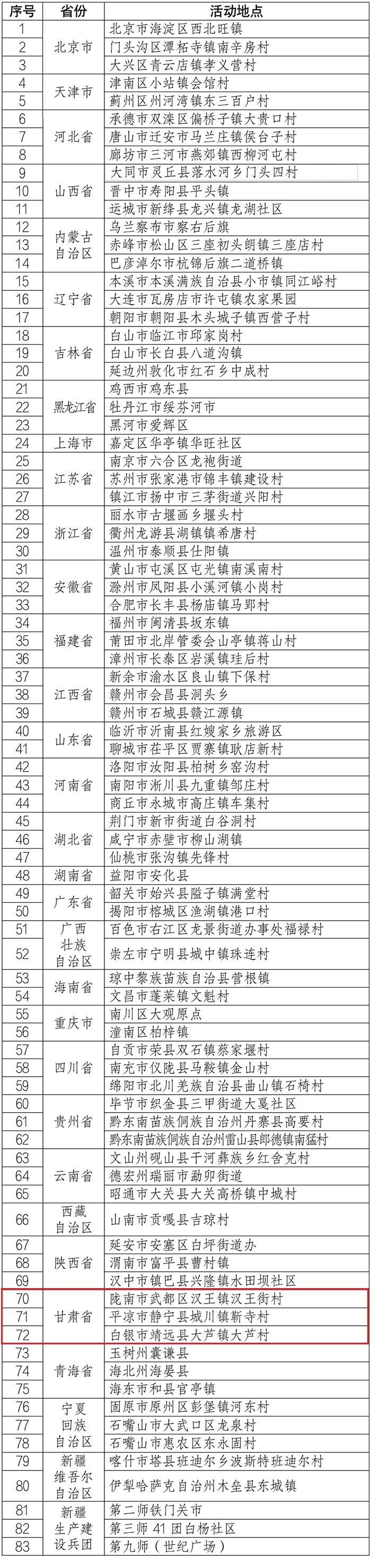 其中甘肅12地入選全國示范