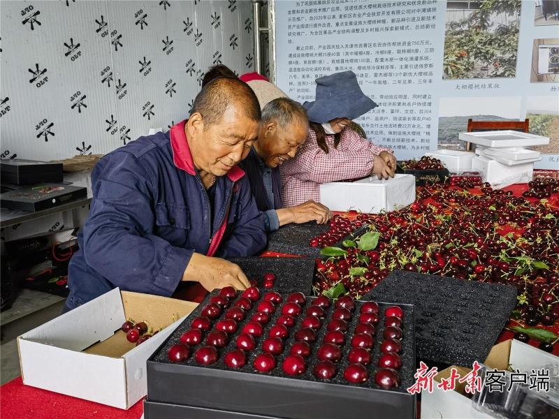 麥積區(qū)中灘鎮(zhèn)櫻桃園里工作人員正在對櫻桃進(jìn)行分揀包裝。