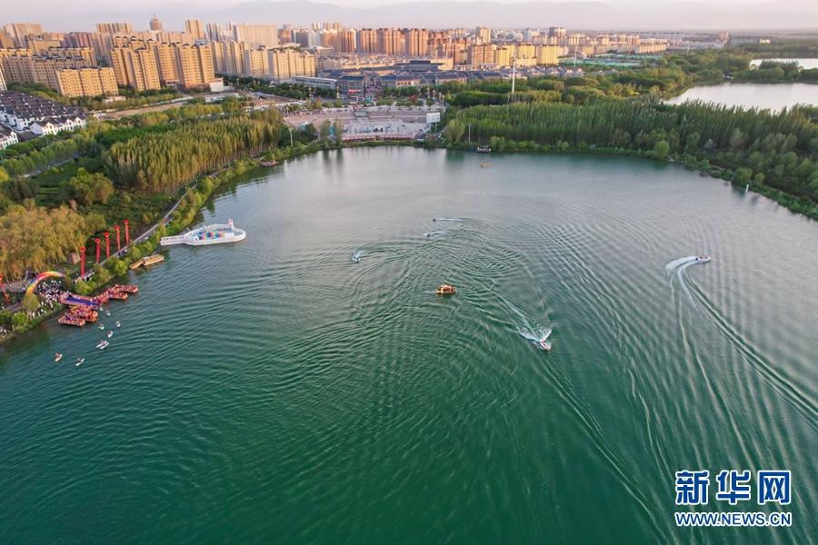 【甘快看】甘肅張掖:碧波接天光 畫舫載夕陽
