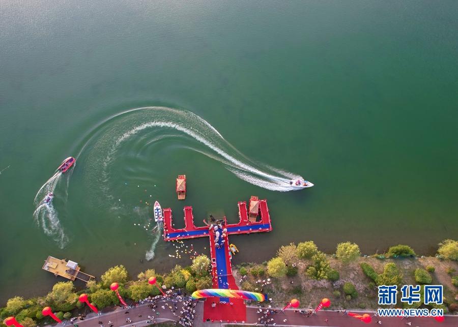 6月13日,“樂游甘州·水上嘉年華”觀光娛樂活動(dòng)在甘肅省張掖市蘆水灣啟航。游客在云中湖和居延湖乘坐觀光畫舫,近距離感受“濕地之城”的夏日美景。新華網(wǎng)發(fā)(劉旭明 攝)