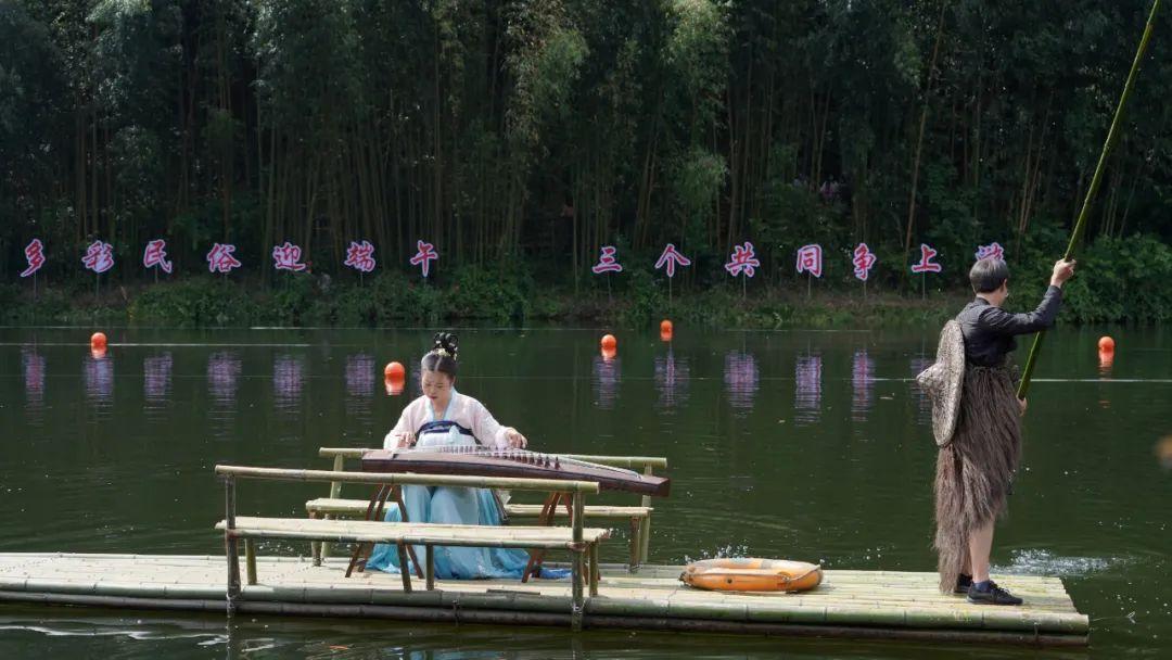 活動現(xiàn)場,在天鵝湖竹筏上表演的古箏、歌曲演唱等形式多樣的文藝節(jié)目贏得了觀眾熱烈掌聲,將現(xiàn)場氛圍推向高潮,引得不少觀眾拿出手機(jī)現(xiàn)場拍照錄像,記錄精彩瞬間。
