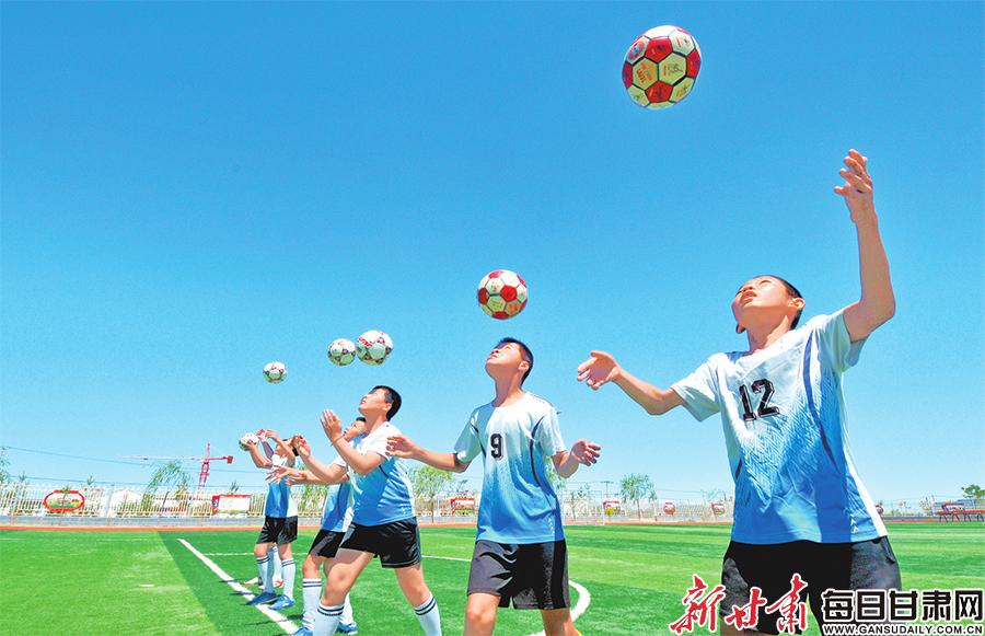 ▲富民完全小學(xué)的孩子們?cè)诰毩?xí)足球。攝影:新甘肅·甘肅日?qǐng)?bào)記者金奉乾