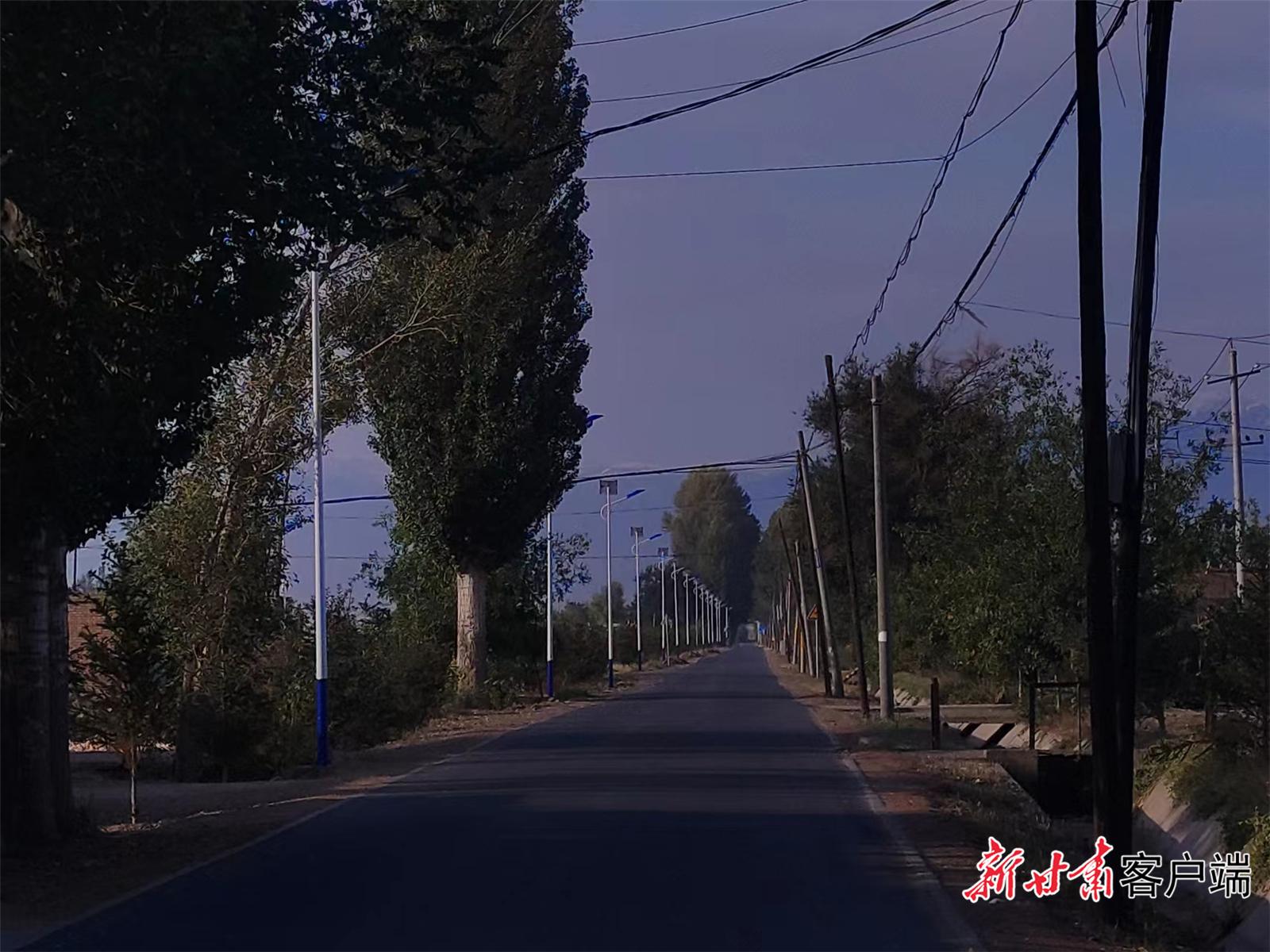 五個(gè)墩村寬敞平坦的村道旁新裝了成排的太陽能路燈。