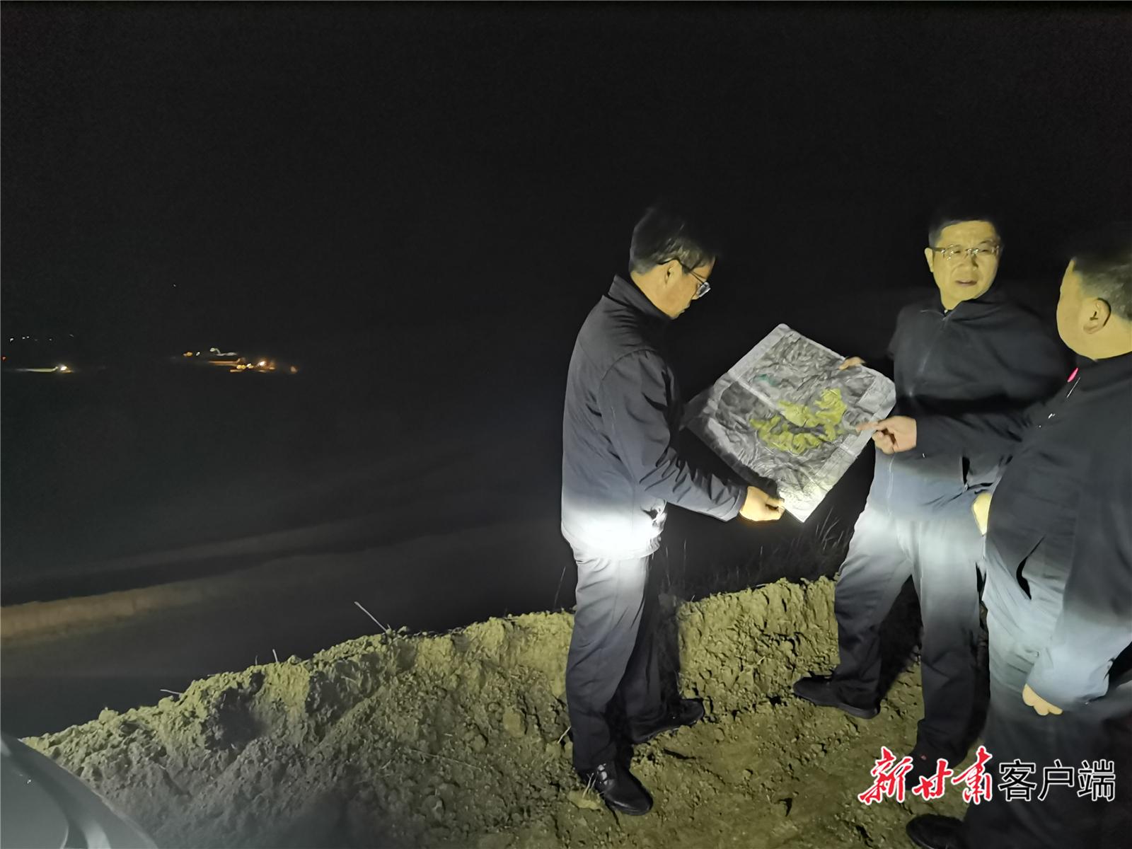 定西市農(nóng)業(yè)農(nóng)村局相關(guān)負(fù)責(zé)人、通渭縣農(nóng)業(yè)農(nóng)村局負(fù)責(zé)人和義崗川鎮(zhèn)黨委同志連夜查看規(guī)劃圖,現(xiàn)場解決工程中的問題,圖中遠(yuǎn)景燈光為高標(biāo)準(zhǔn)梯田建設(shè)現(xiàn)場。