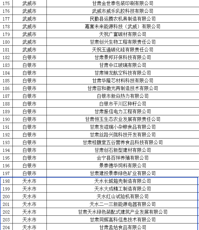 名單出爐!天水19家企業(yè)入選