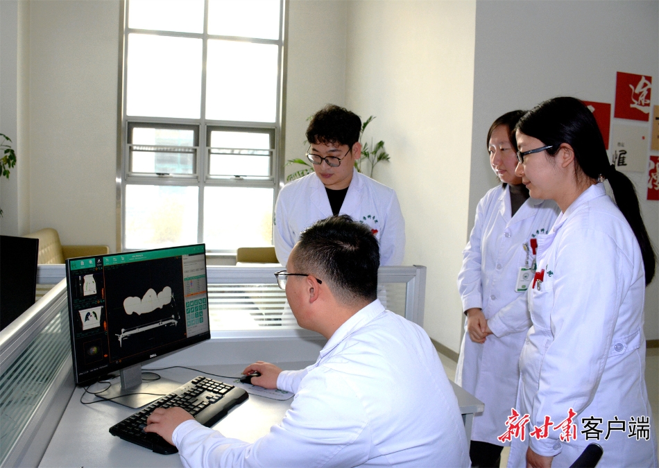 甘肅省武威腫瘤醫(yī)院重離子院區(qū)年輕醫(yī)生在討論病歷。新甘肅·甘肅日報記者 金奉乾攝