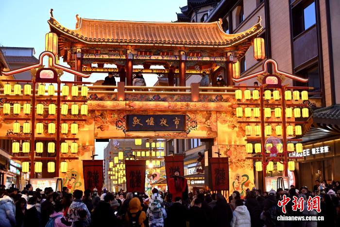 2月1日,隨著春節(jié)臨近,甘肅敦煌市旅游持續(xù)升溫,夜游敦煌的客流不絕。張曉亮 攝