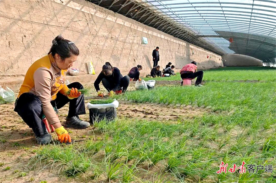 走進民勤縣大壩鎮(zhèn)文二村種植戶盧向家的溫室大棚,綠油油的沙蔥連片成畦,蔥香濃郁。由務(wù)工婦女組成的臨時“采收隊”,正忙著采收、分揀、裝袋、過秤……