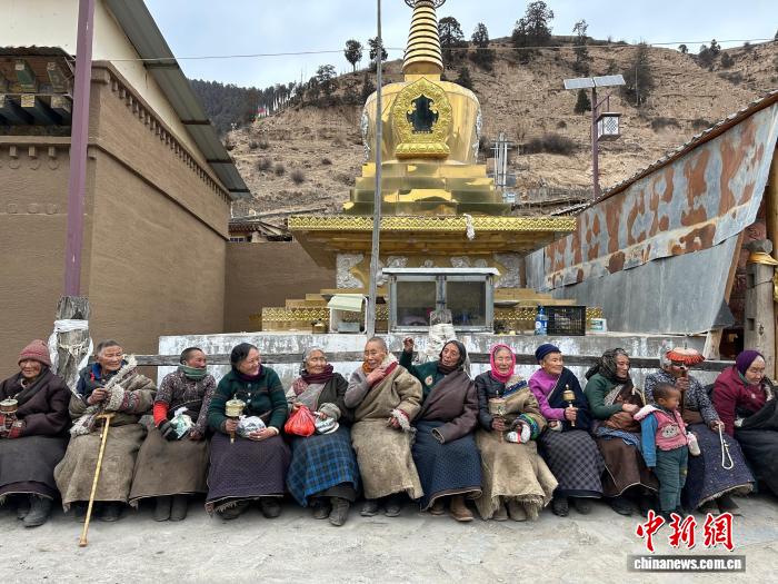 2月中旬,中新社、中新網(wǎng)記者探訪尼巴村,經(jīng)幡隨風(fēng)搖曳,濃郁的藏鄉(xiāng)風(fēng)情撲面而來。整個村寨坐北朝南,陽光充沛,層層疊疊的木質(zhì)藏式民居錯落分布,清澈的車巴河從藏寨腳下穿村而過。寨子里的青石板路被歲月磨得锃亮,轉(zhuǎn)角的瑪尼堆、墻上的六字真言,處處彰顯著藏文化的深厚底蘊。