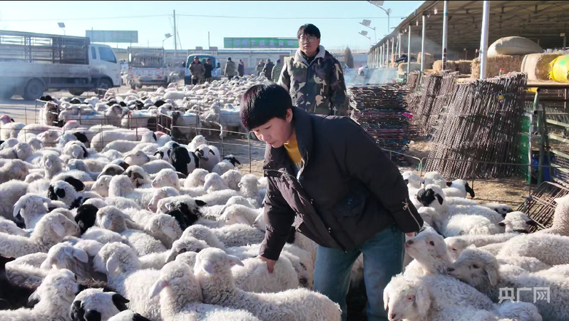 蒲萬林在古浪縣牛羊交易市場(chǎng)挑選羊羔(央廣網(wǎng)記者 寇剛 攝)