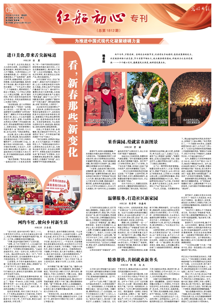 丙午馬年,萬象更新。在剛過去的春節(jié)里,記者前往多地看到:惠農(nóng)政策持續(xù)發(fā)力,社區(qū)服務(wù)網(wǎng)絡(luò)日益完善,節(jié)日消費(fèi)市場紅火,就業(yè)服務(wù)精準(zhǔn)落地,科技助力讓生活更便捷……一個(gè)個(gè)暖心變化,蘊(yùn)藏著民生溫度,映照著發(fā)展生機(jī)。