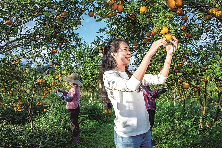 產(chǎn)業(yè)興,百姓富。在陳慧的帶動(dòng)下,周邊越來越多的村民投身貢柑產(chǎn)業(yè),實(shí)現(xiàn)家門口就業(yè)增收。“我在果園打工,一個(gè)月能掙3000多塊,還能照顧家里的老人孩子,比外出打工舒心多了?!闭诖虬暩痰拇迕駨埌⒁棠樕涎笠缰腋5男θ?,“跟著這個(gè)姑娘干,我們不僅學(xué)會(huì)了種植技術(shù),還能拿到分紅,日子越過越有奔頭!”