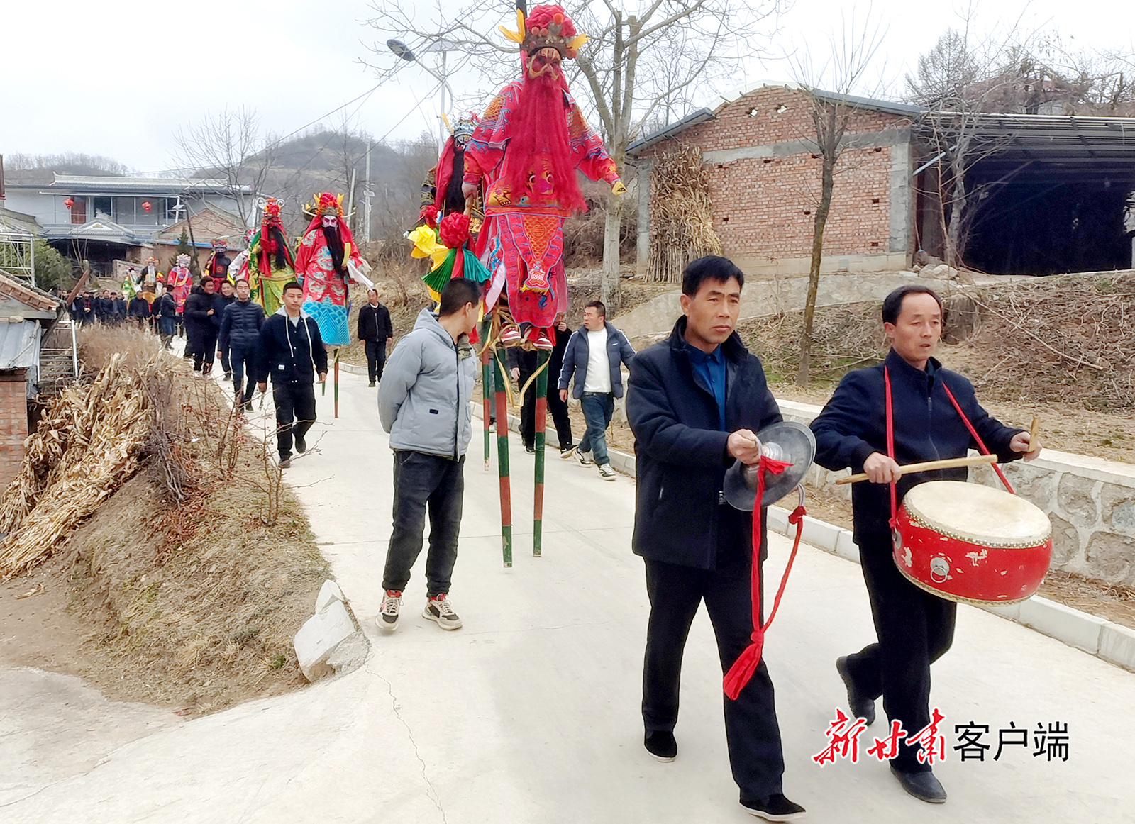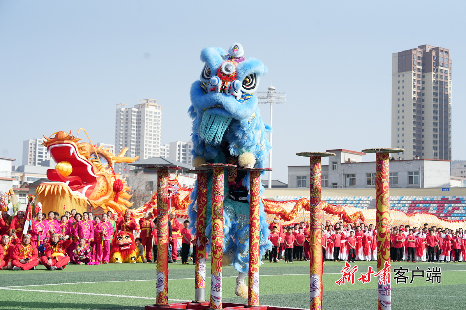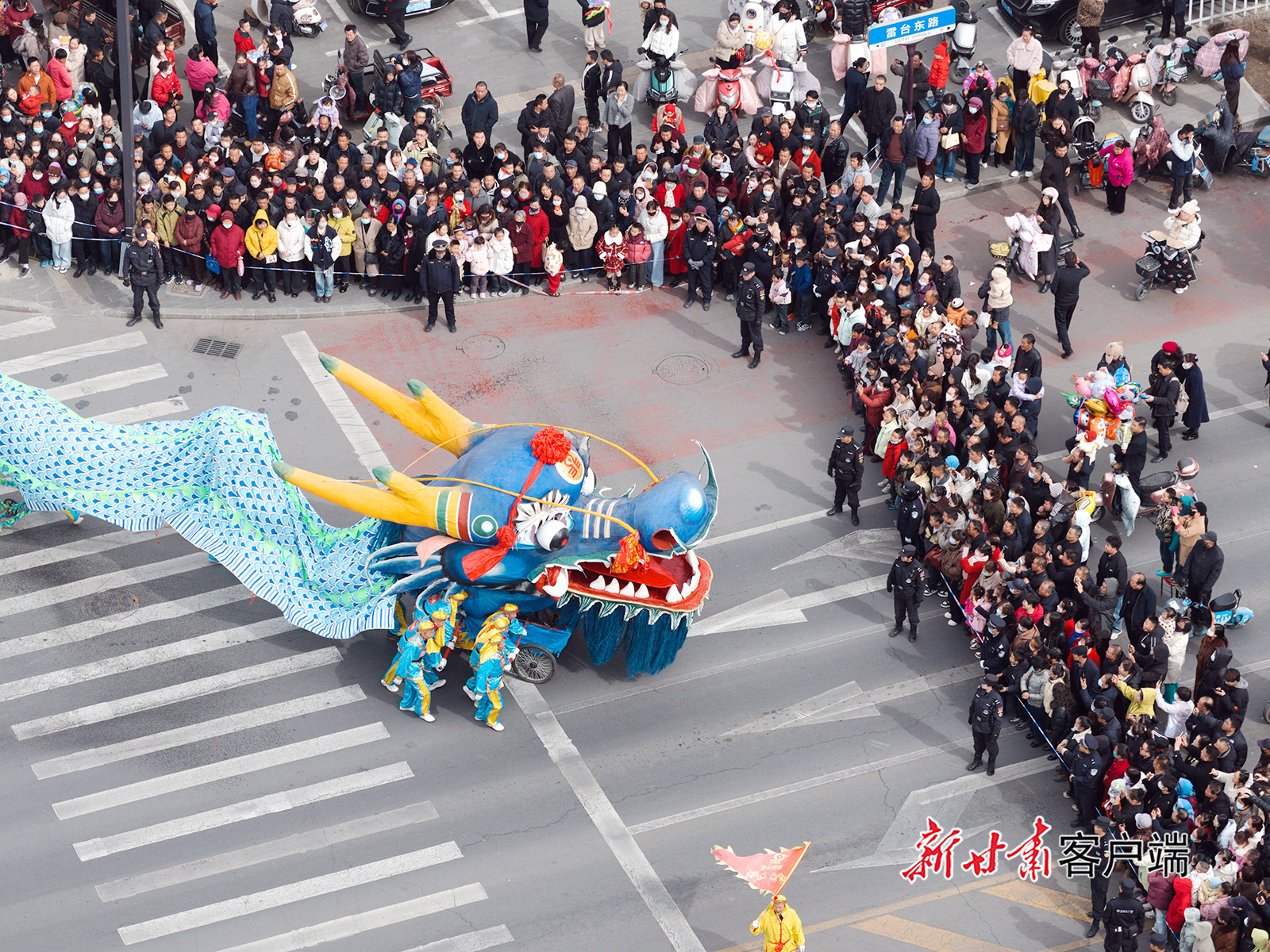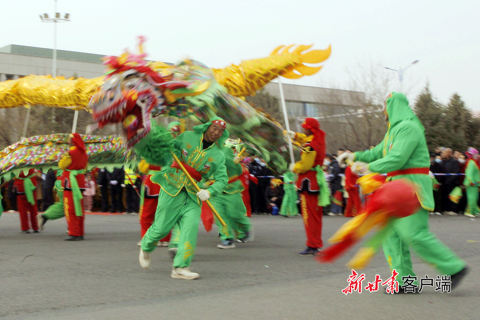 2月24日,慶陽市西峰區(qū)董志鎮(zhèn)莊子洼村、吳莊村社火隊(duì)輪番上陣,與當(dāng)?shù)馗刹柯毠ぜ爸苓吶罕娨黄鸸矐c賀新春。新甘肅·甘肅日?qǐng)?bào)通訊員 盤小美